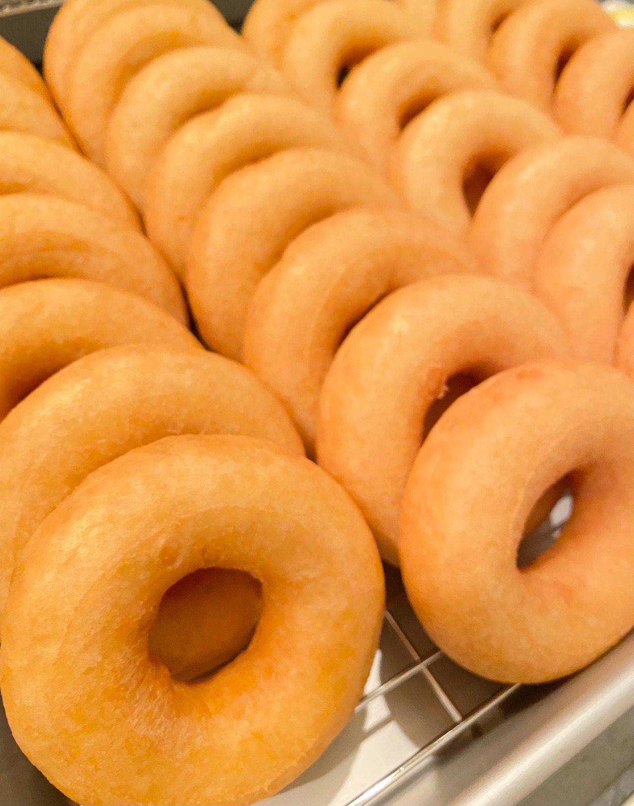 ドーナツ生地は木綿豆腐をたっぷり手作業で混ぜ込み、こだわりの製法で仕上げています。卵と乳製品は一切使用しておりませんので、アレルギーをお持ちのお子様でも安心してお召し上がりいただけます。全体の1割程度、小麦粉を含んでいます。